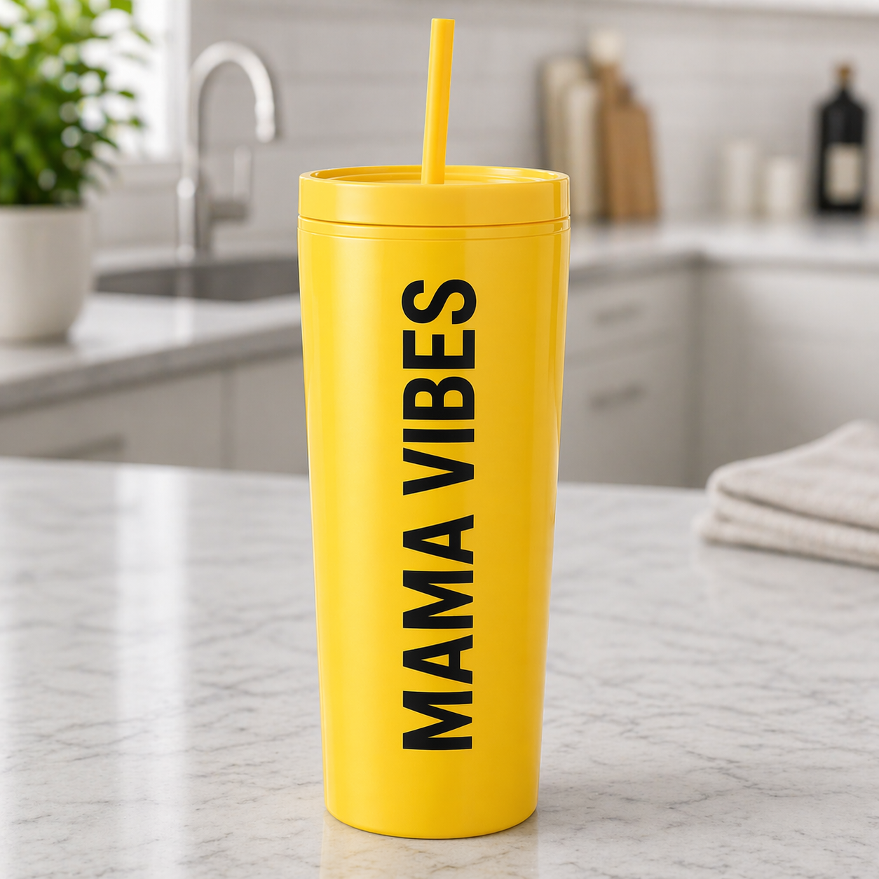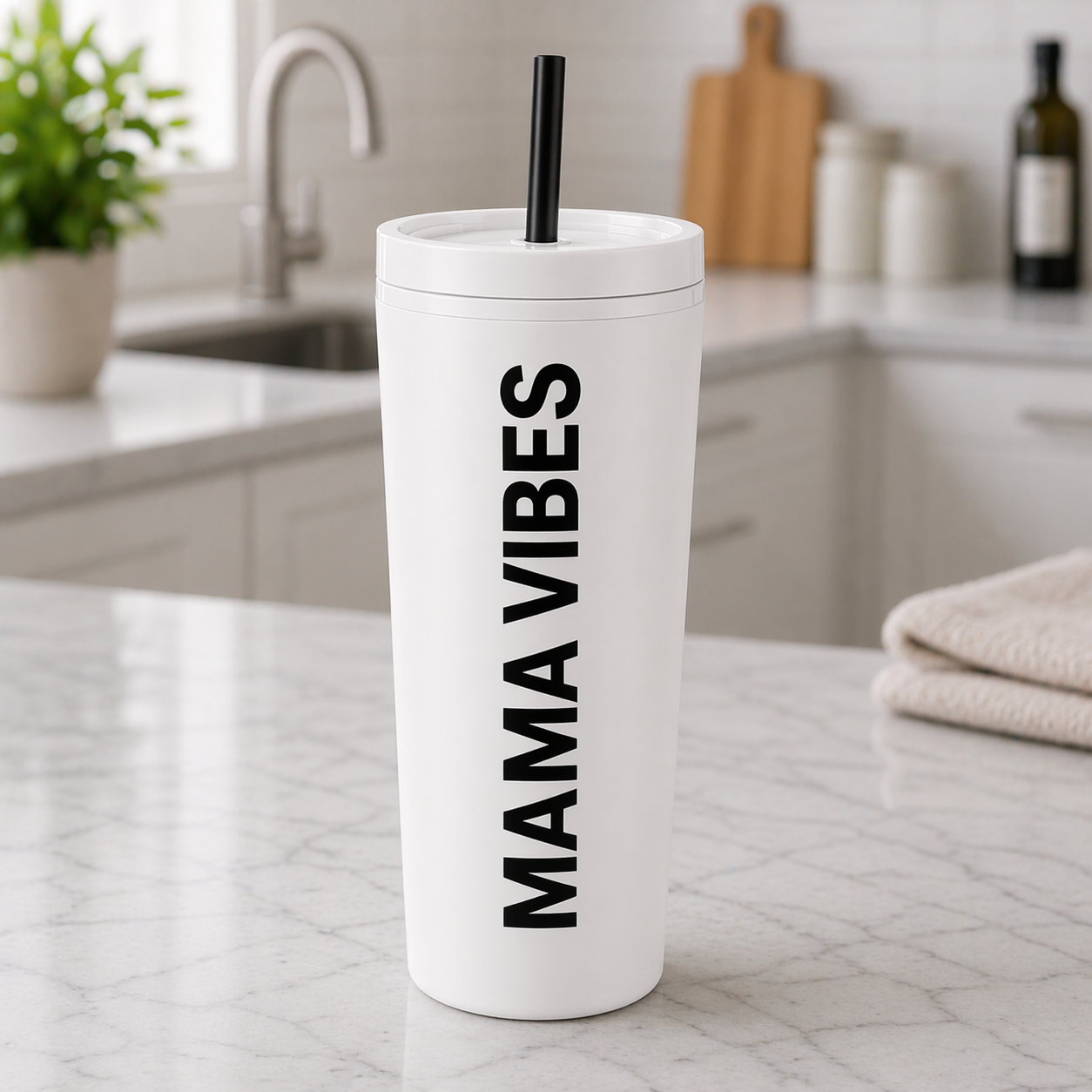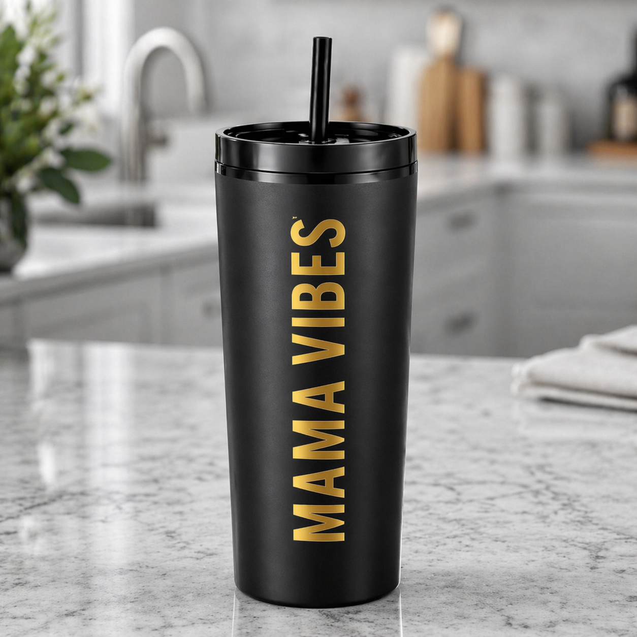 The Mama’s Vibes Tumbler is designed for moms who move with intention and show up in style. With its sleek black finish and bold gold detailing, it turns every sip into a statement.