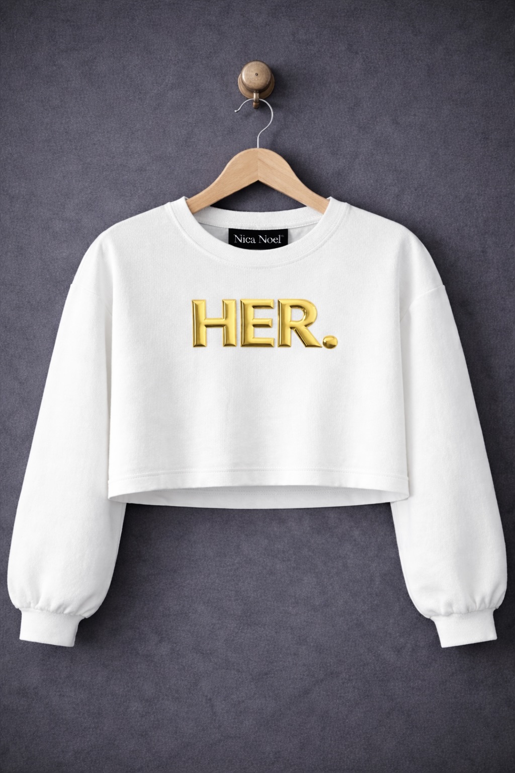 Nica Noel® HER. Embossed, long Sleeve Baggy Crop Top, ISF