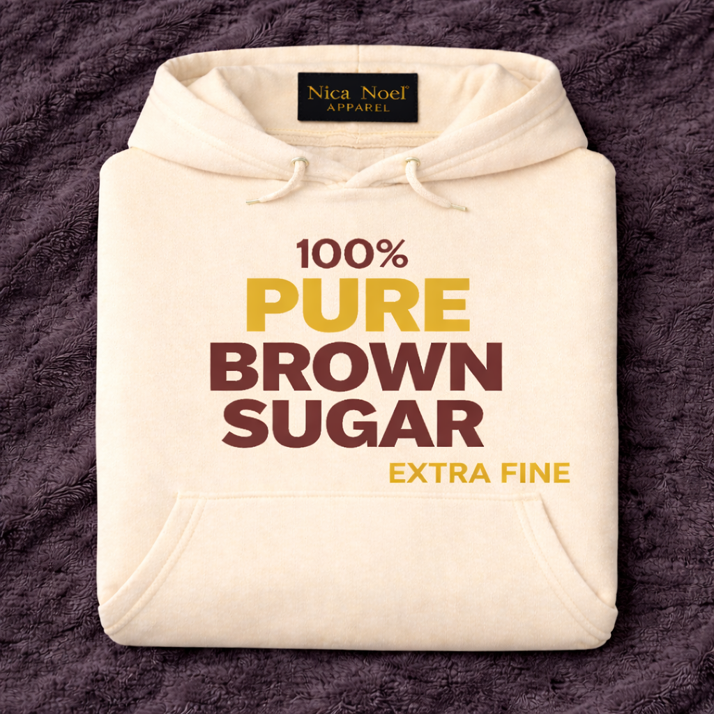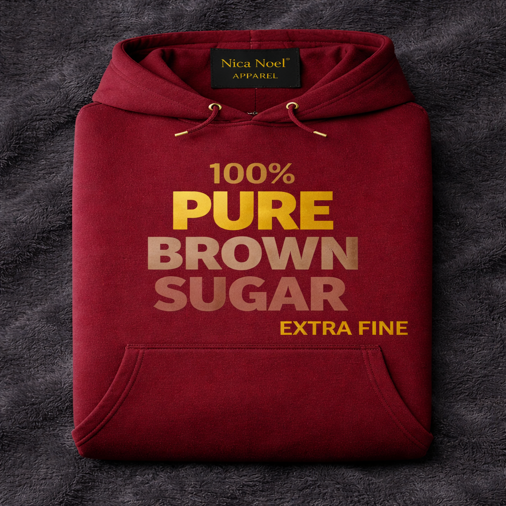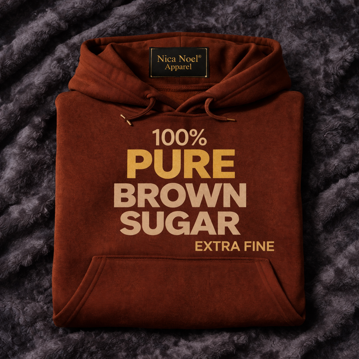 Wrap yourself in warmth and confidence with the Nica Noel® 100% Pure Brown Sugar Pullover Hoodie, ISF—a cozy yet bold tribute to melanin magic, inner strength, and sweet sophistication. Perfect for cool days, chill nights, or when you just want to remind the world that you’re the flavor and the fire.