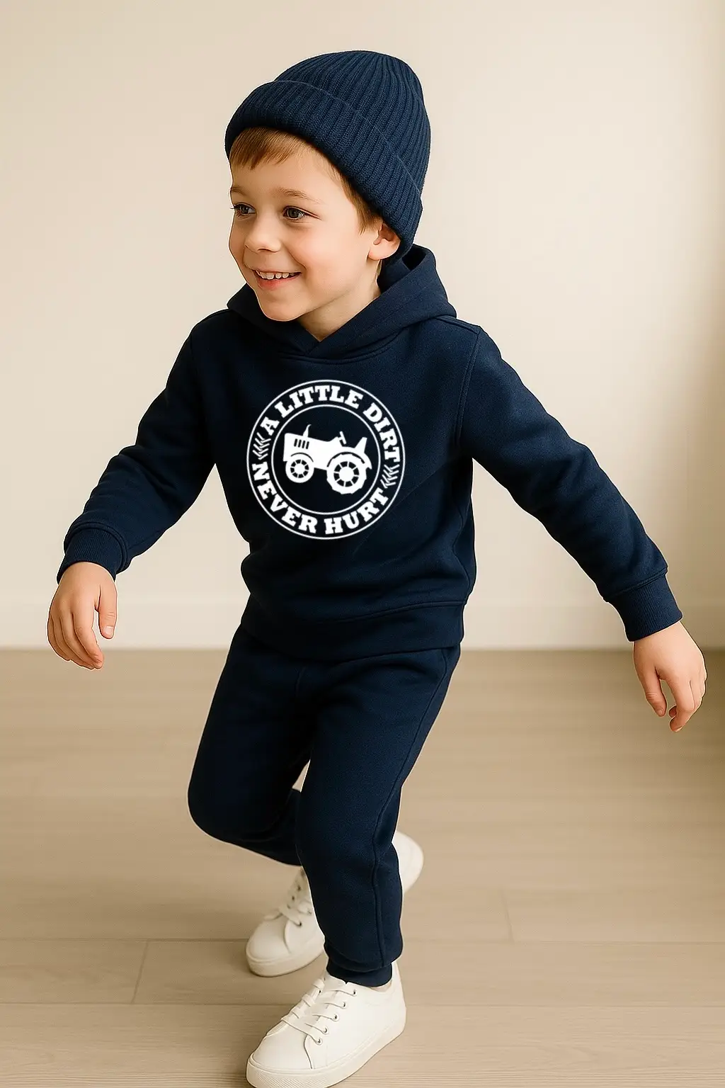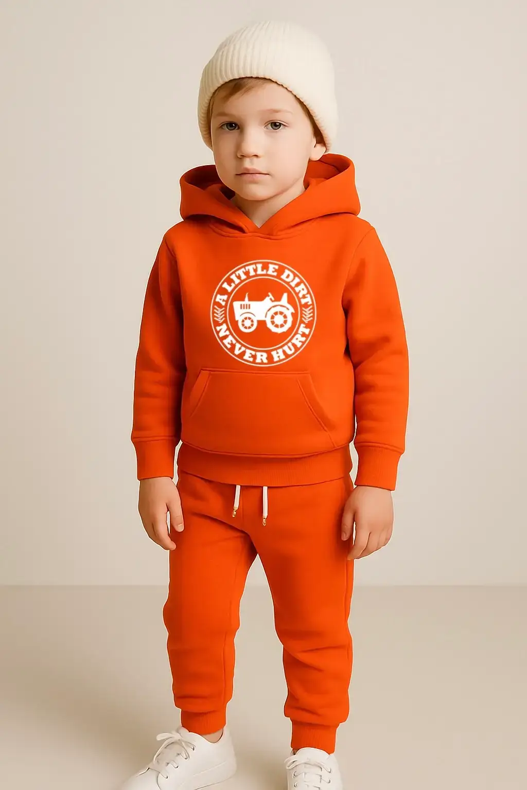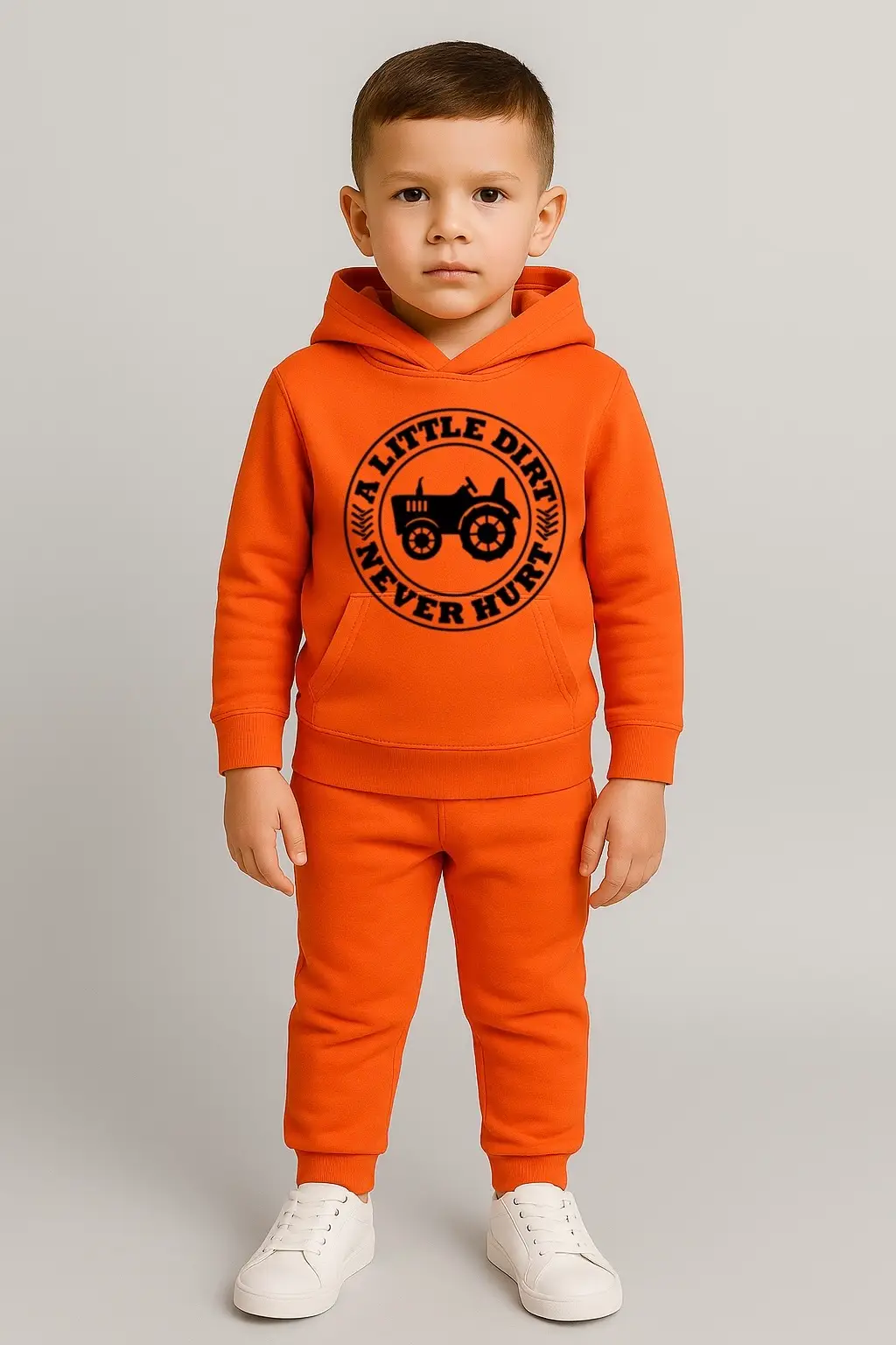 Let them jump, roll, run, and explore — because a little dirt never hurt! The Nica Noel® “A Little Dirt” Boys Hooded Sweatsuit is built for adventure, designed for comfort, and infused with the confidence every little master needs to conquer his world.