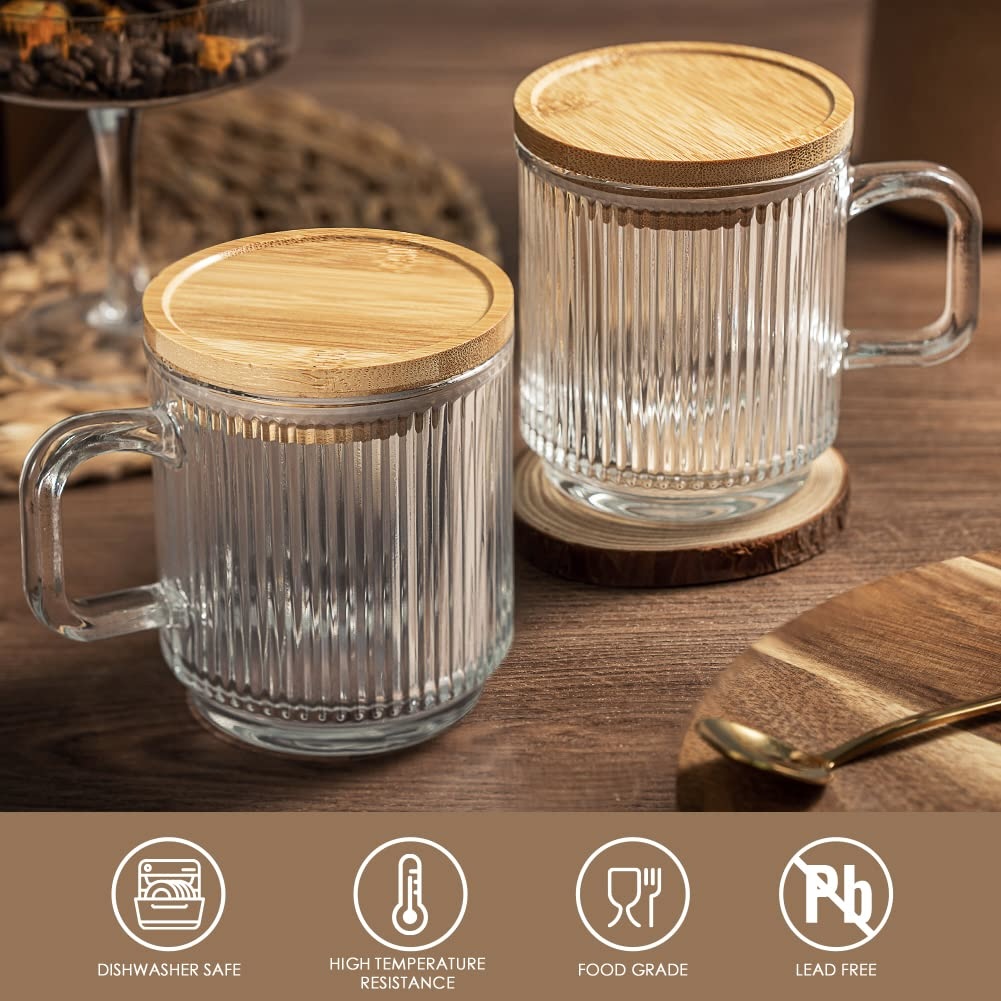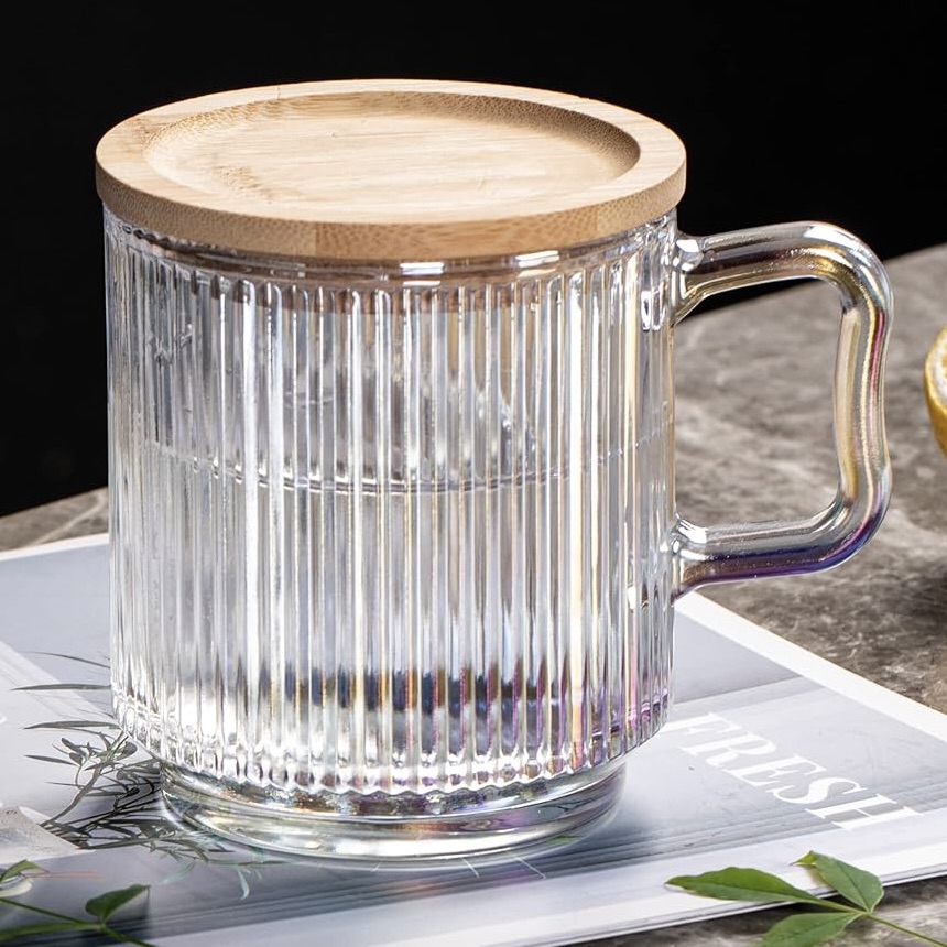 Enjoy the beauty of simplicity with the Nica Noel® Premium Clear Glass Coffee Mug with Lid 15oz ISF, designed with delicate vertical stripes that add a touch of vintage class to your modern routine. Made from high-quality glass and topped with a matching lid, this mug is ideal for warm drinks that deserve to be sipped in style.