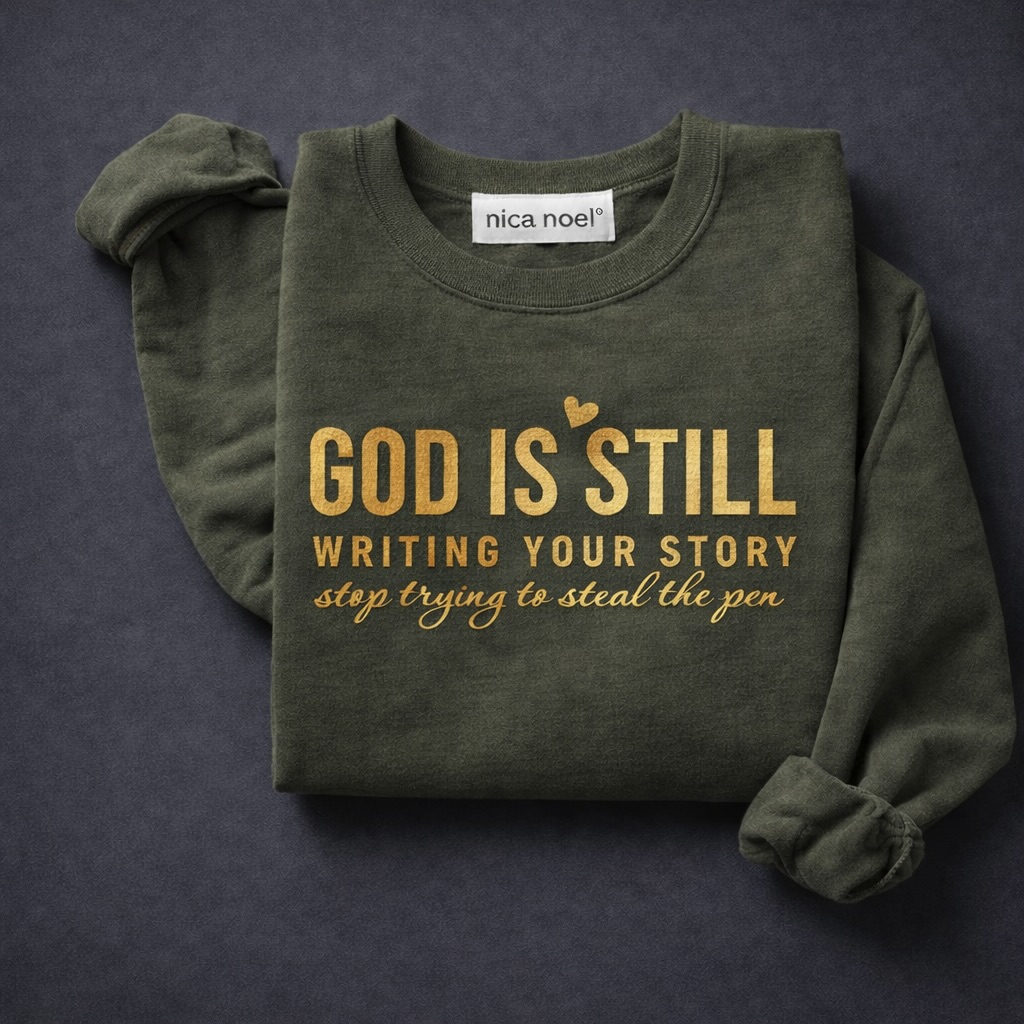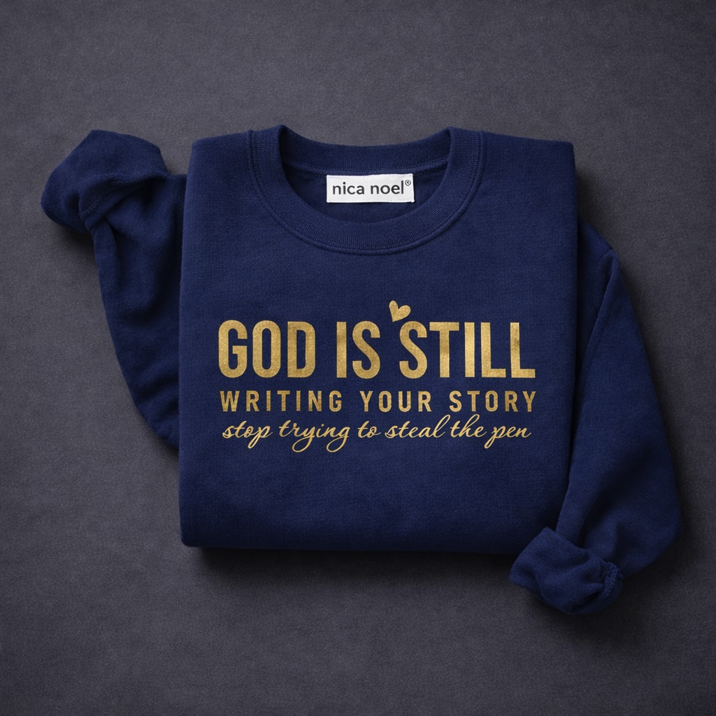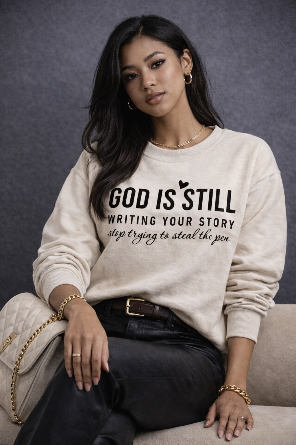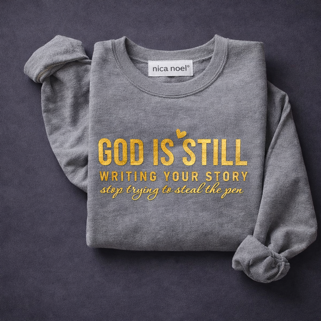 Make a statement without saying a word in the Nica Noel® God Is Still… Sweatshirt, ISF—where faith, confidence, and street-style edge come together. This sweatshirt is designed for women who trust the process, stand firm in belief, and move through life with quiet strength and undeniable presence.