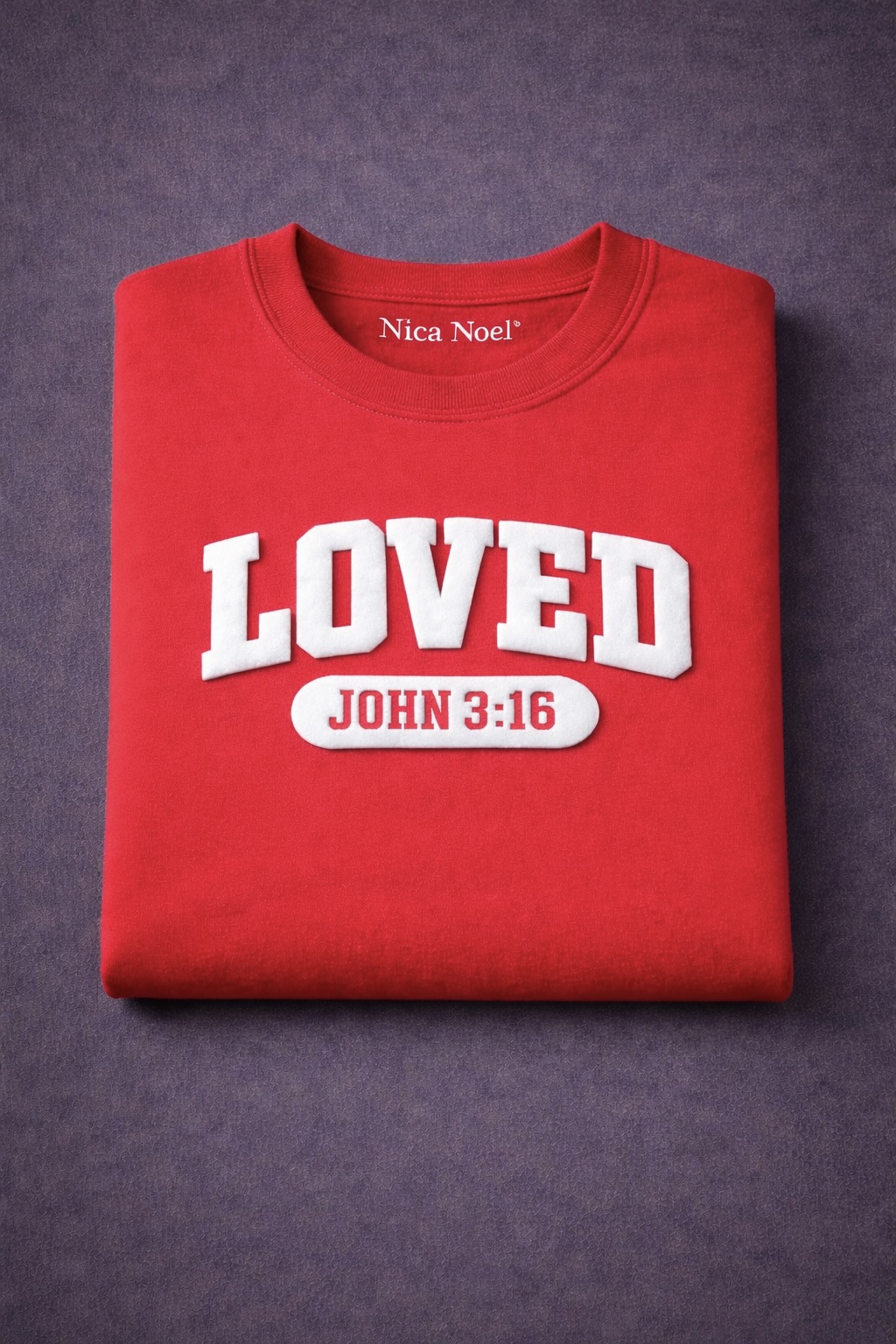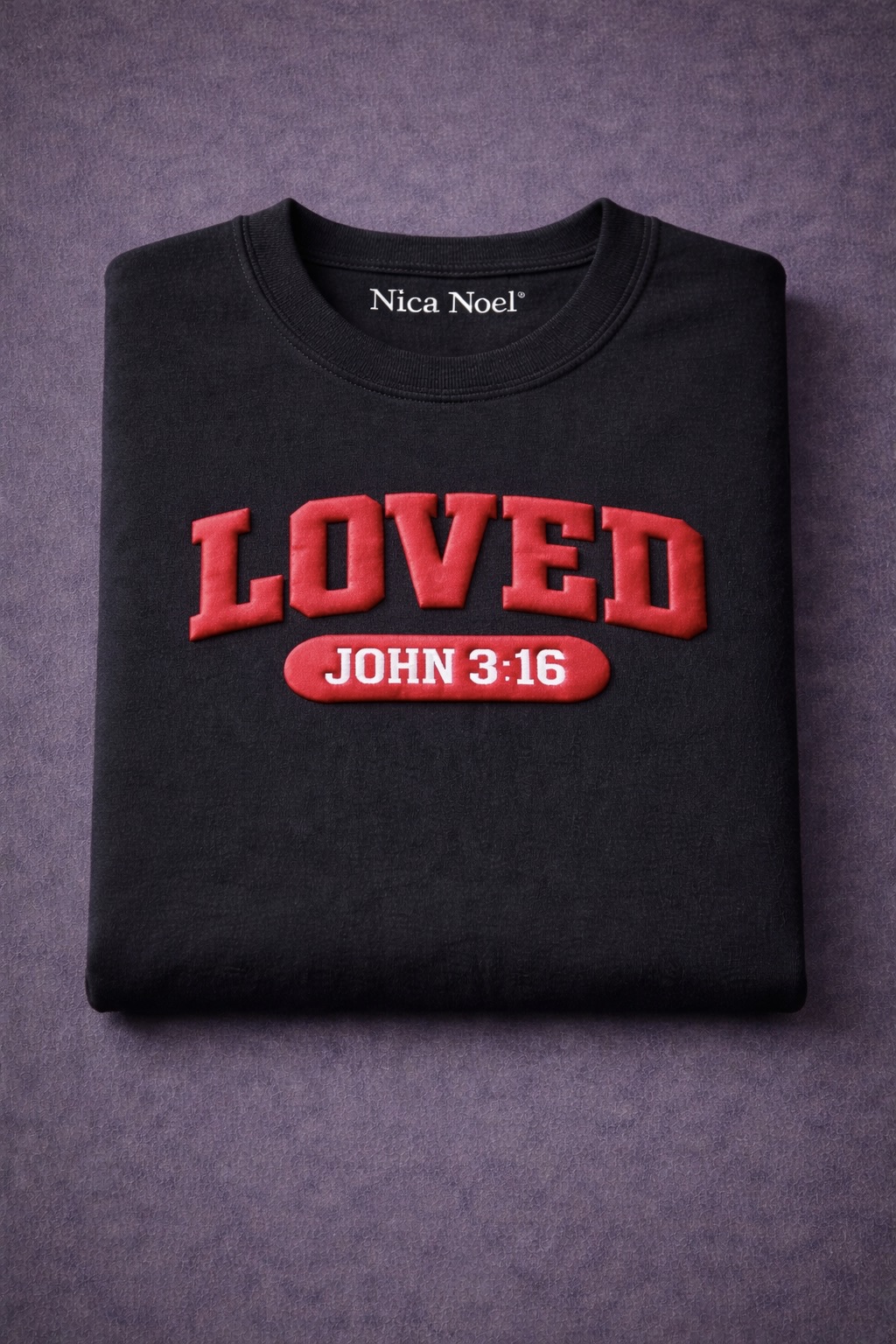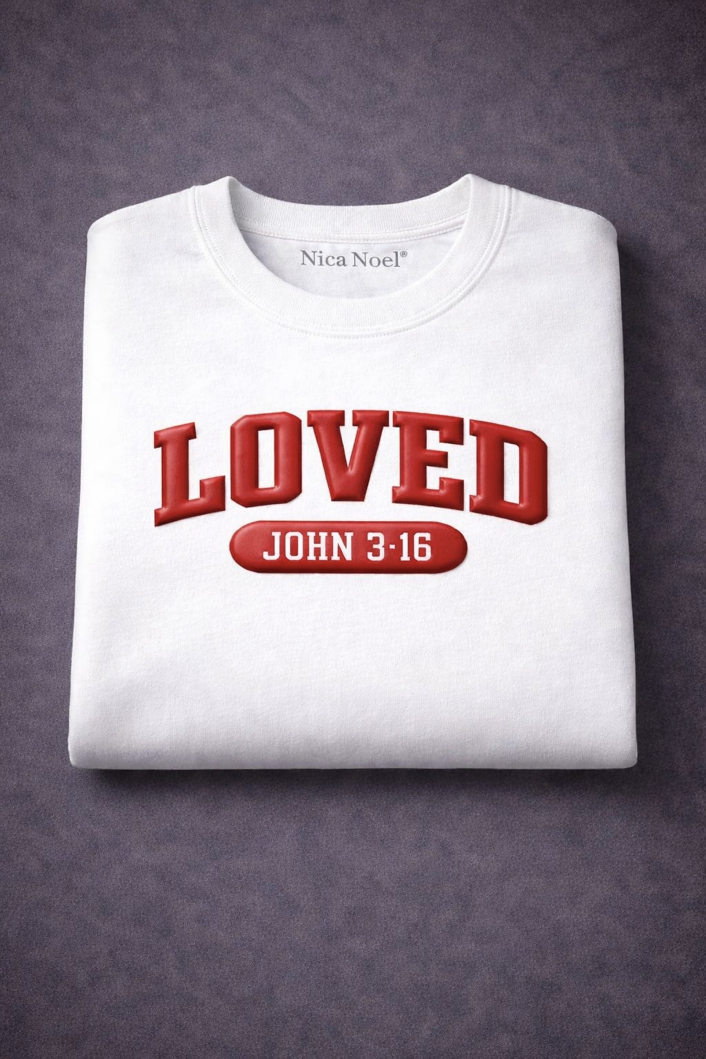 The Nica Noel® Loved. John 3:16 Puff Embossed Tee, ISF is a bold yet refined declaration of identity and belief. Designed for women who lead with grace and strength, this tee features raised puff-embossed lettering that adds depth, texture, and quiet luxury to a powerful message.