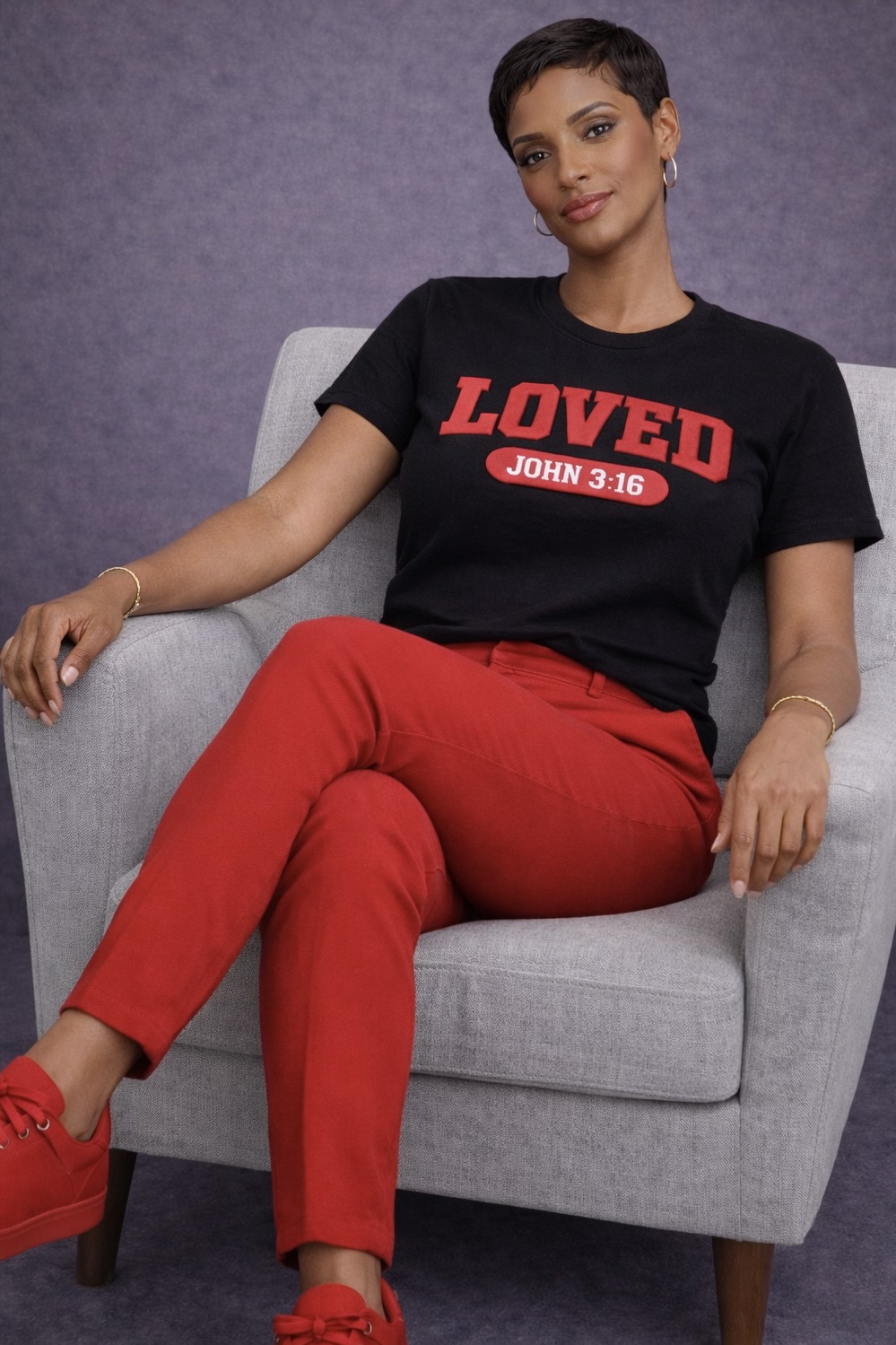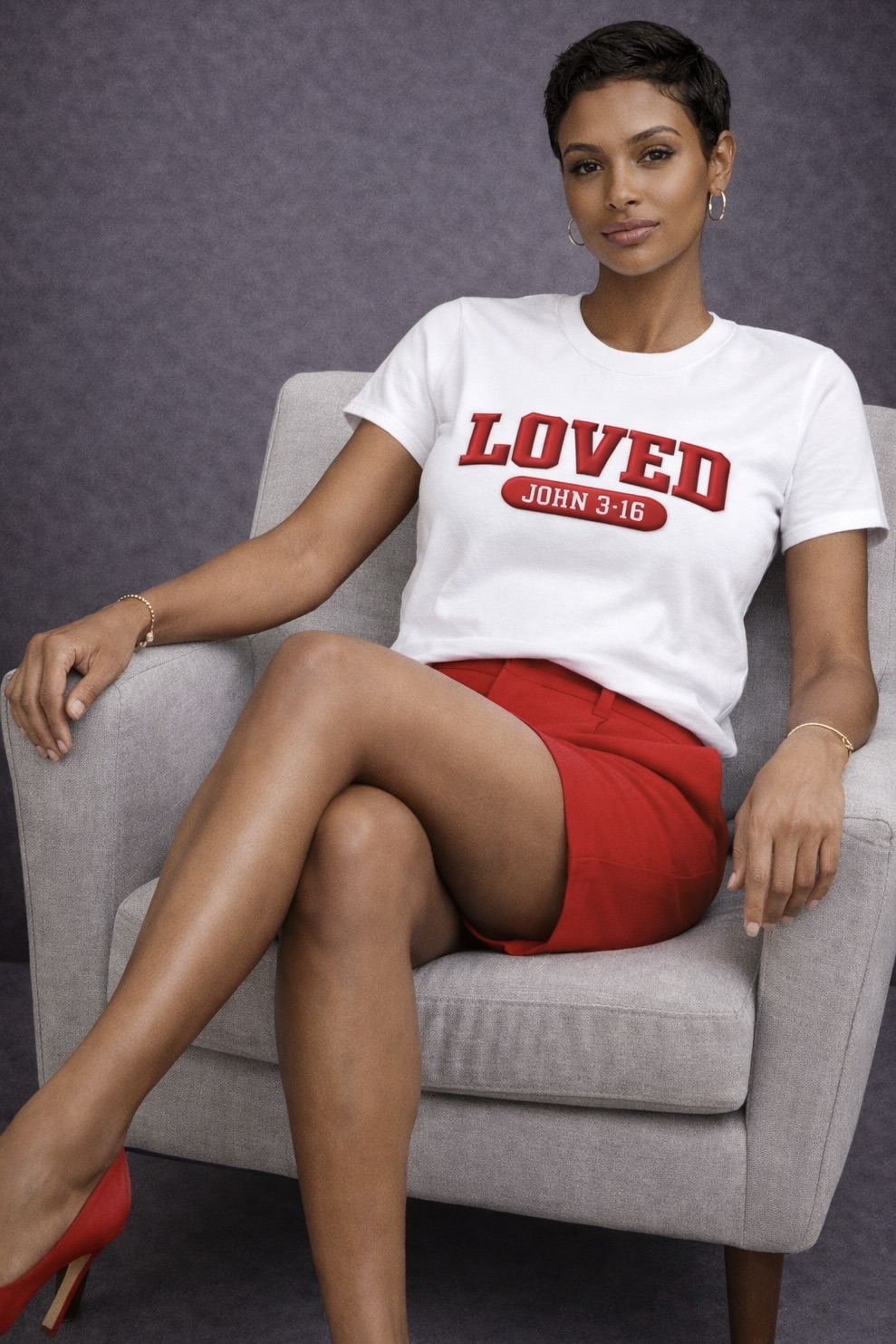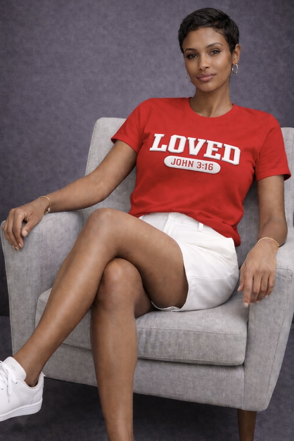 The Nica Noel® Loved. John 3:16 Puff Embossed Tee, ISF is a bold yet refined declaration of identity and belief. Designed for women who lead with grace and strength, this tee features raised puff-embossed lettering that adds depth, texture, and quiet luxury to a powerful message.