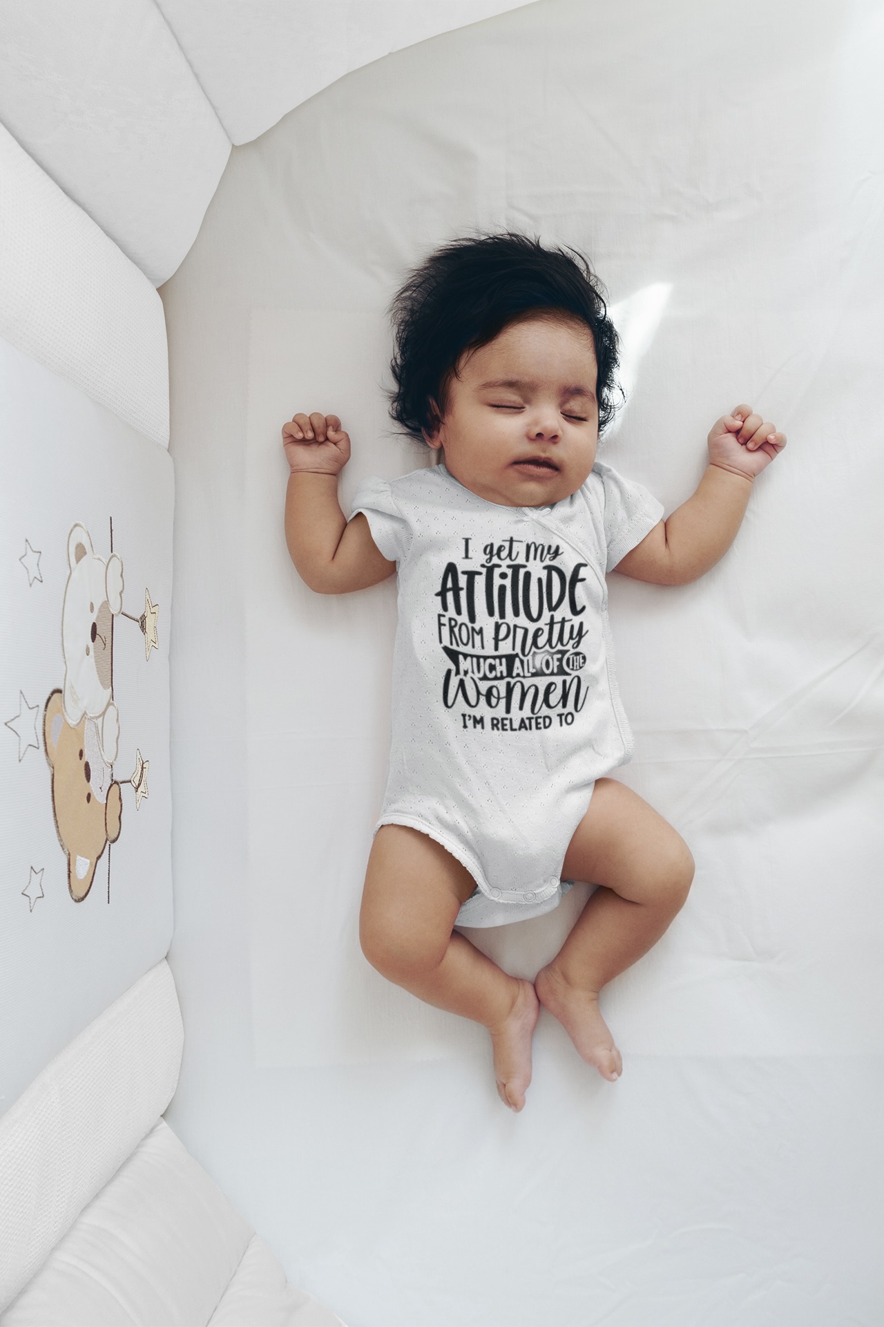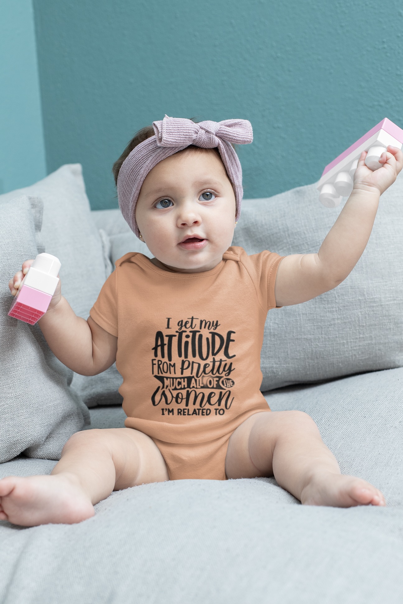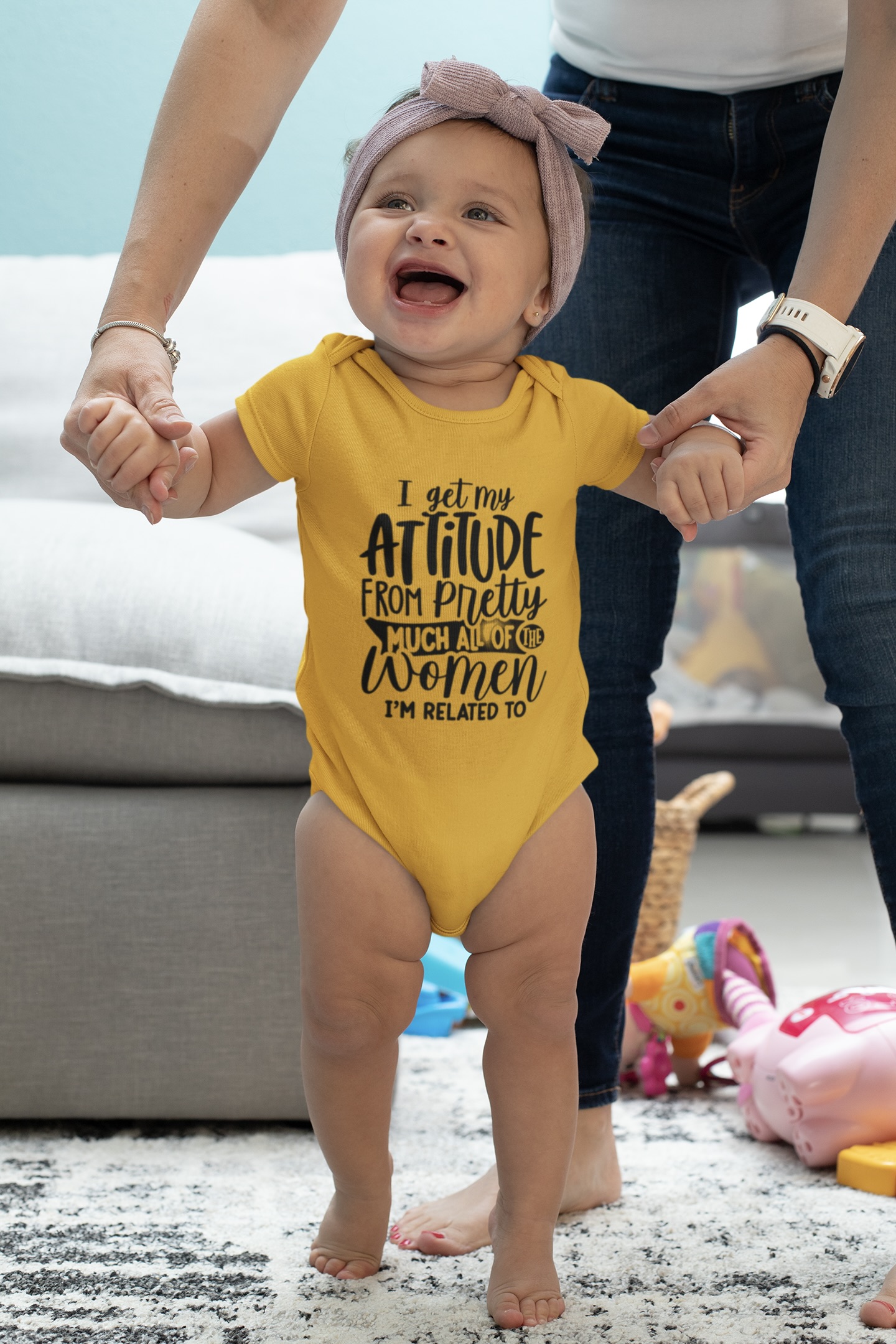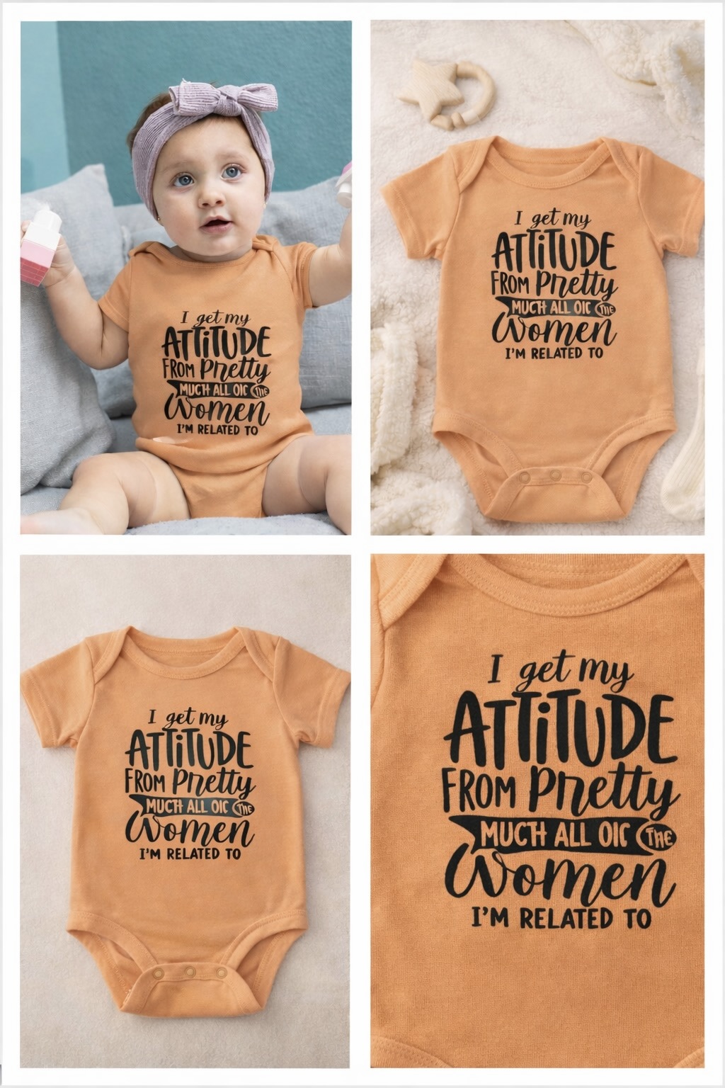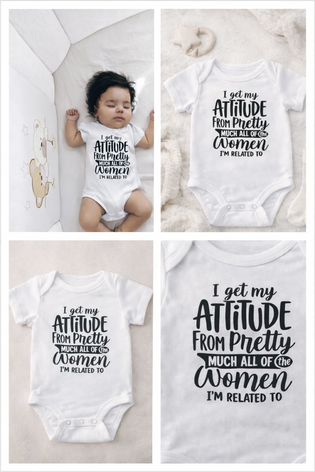 Dress your little one in confidence and cuteness with the Nica Noel® I Got My Attitude From Pretty Much All The Women I’m Related To Onesie, PO—a tribute to generations of bold, strong, and stylish women. Because baby girl was born with the vibe.