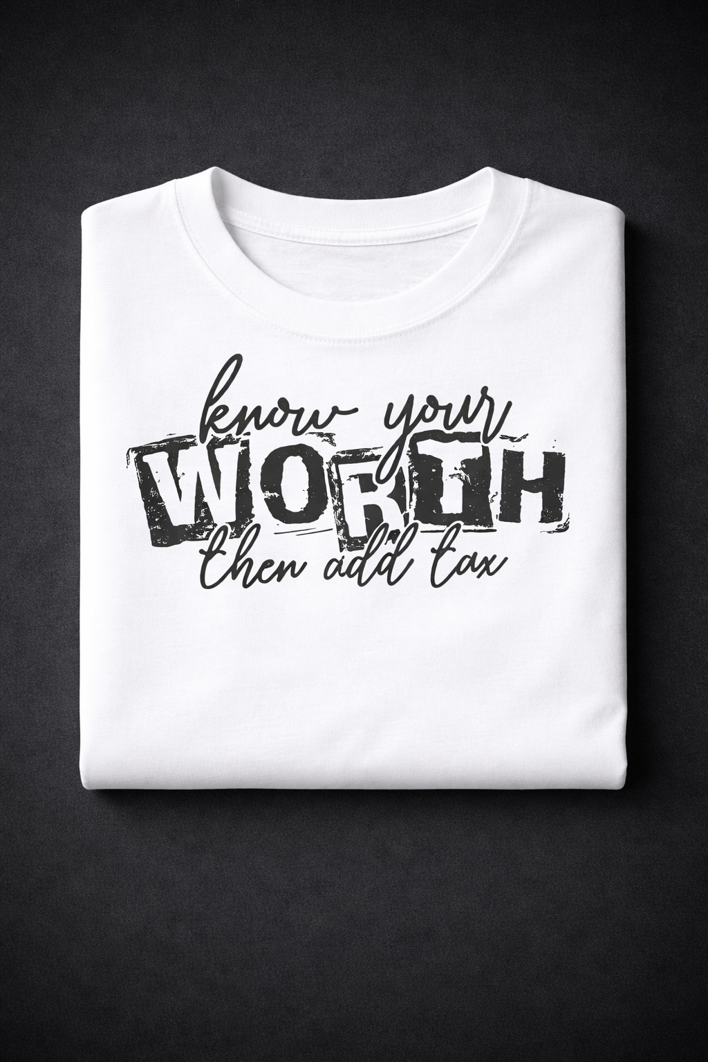 ✔️ Design: “Know Your Worth And Then Add Tax” statement typography