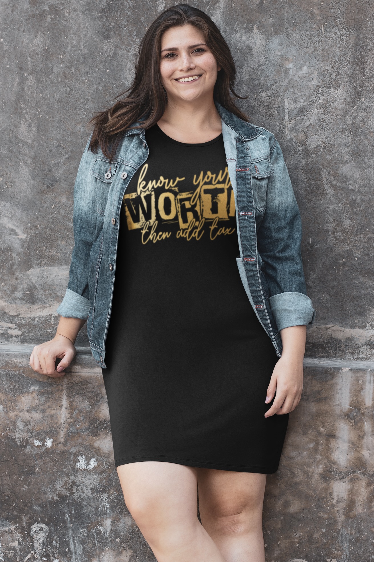✔️ Design: Bold front graphic: “Know Your Worth… Then Add Tax” in luxe font for that main character energy