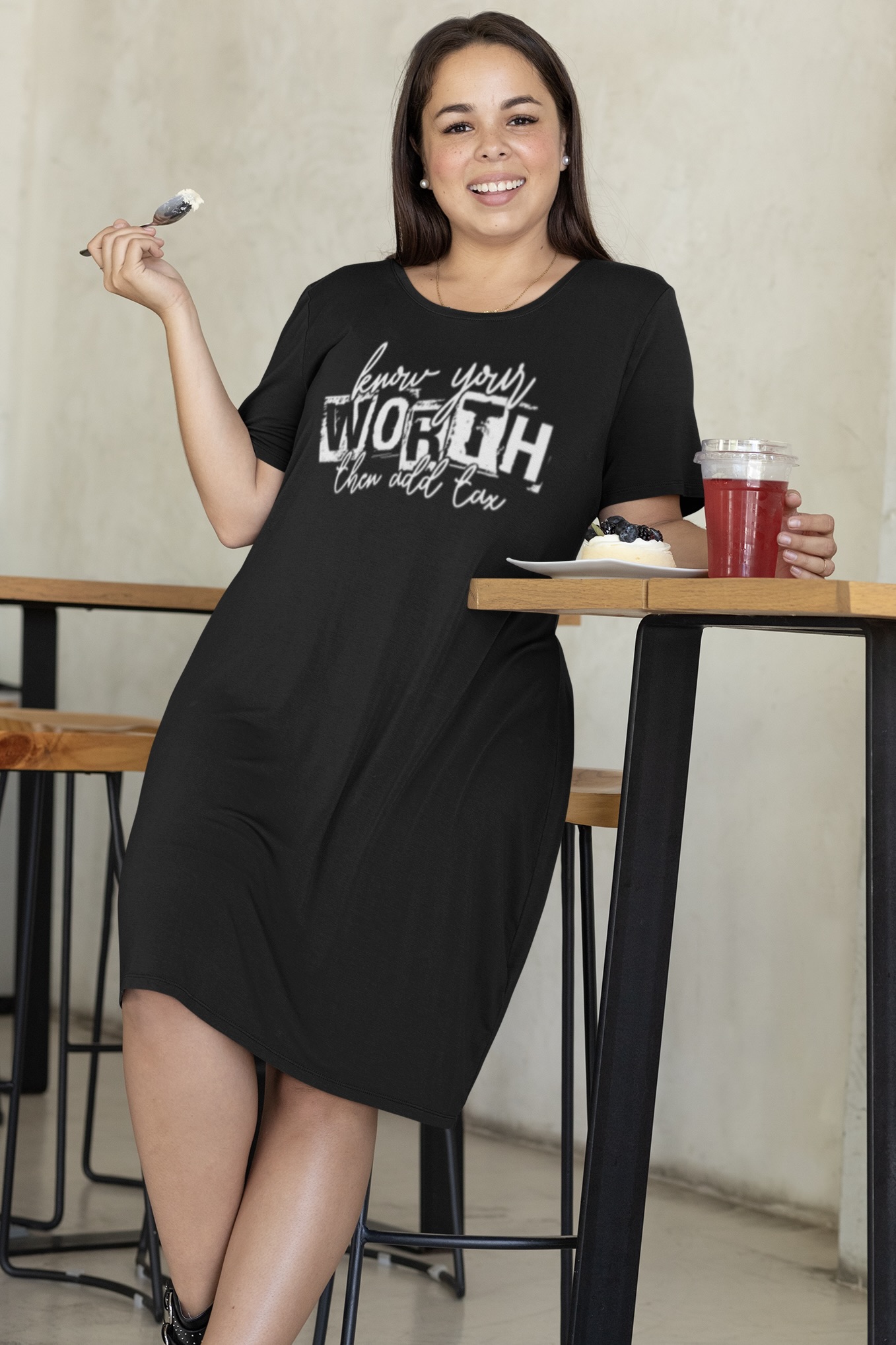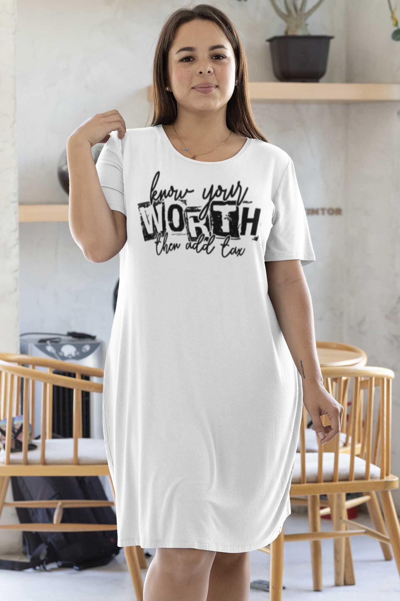 Step into your power with the Nica Noel® Know Your Worth Then Add Tax T-Shirt Dress, ISF—a soft, statement-making piece that speaks volumes without saying a word. Whether you’re brunchin’, hustlin’, or chillin’ pretty, this dress is your wearable reminder that you are luxury, baby.